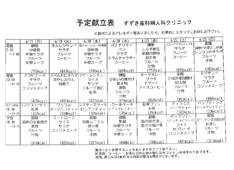 • 献立表の予定をアップします【6月17日〜6月23日】