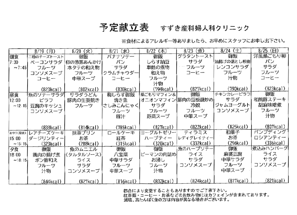 • 献立表の予定をアップします【8月19日〜8月25日】