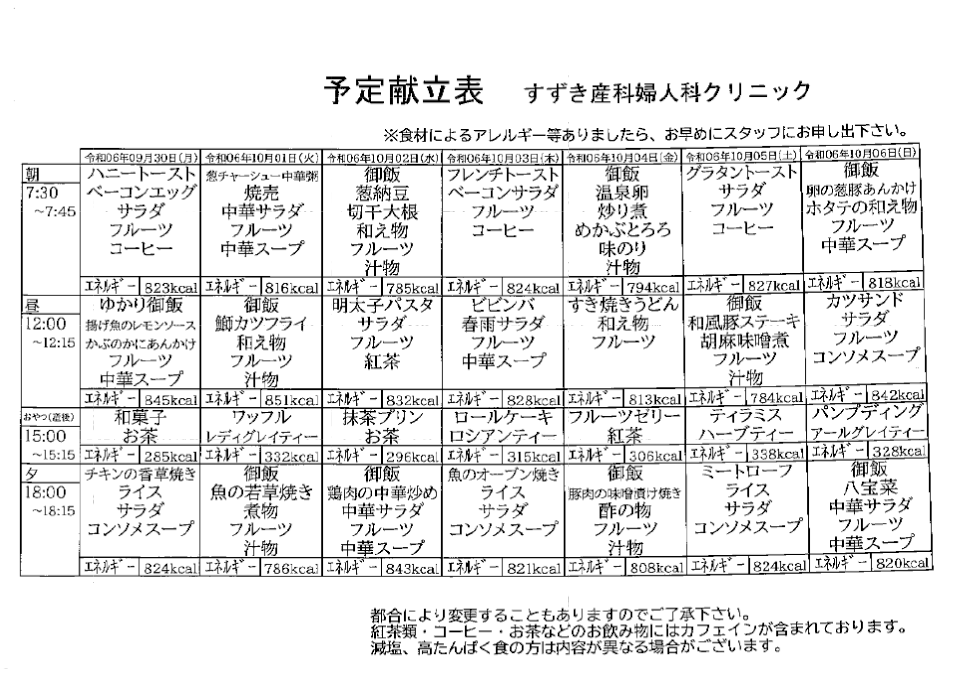 • 献立表の予定をアップします【9月30日〜10月6日】